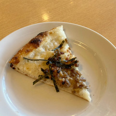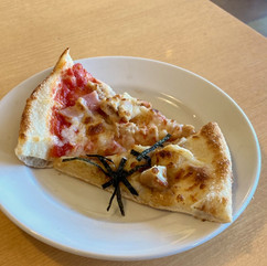 札を「まだまだいただきます」にして待っていると、最初は海苔ののっている和風ピッツァが配られました。